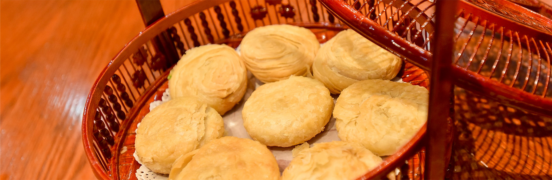 车轮饼是洋河的一款经典小吃,声名远播,老少皆宜。形状酷似车轮,主要原料为面粉、芝麻、青红丝、生猪板油、冰糖等,有豆沙、芝麻、五仁、紫薯馅等几大口味,酥层清晰,既酥又脆,轻轻咬一口,松脆甜香的口感溢满舌尖,让人回味久久。