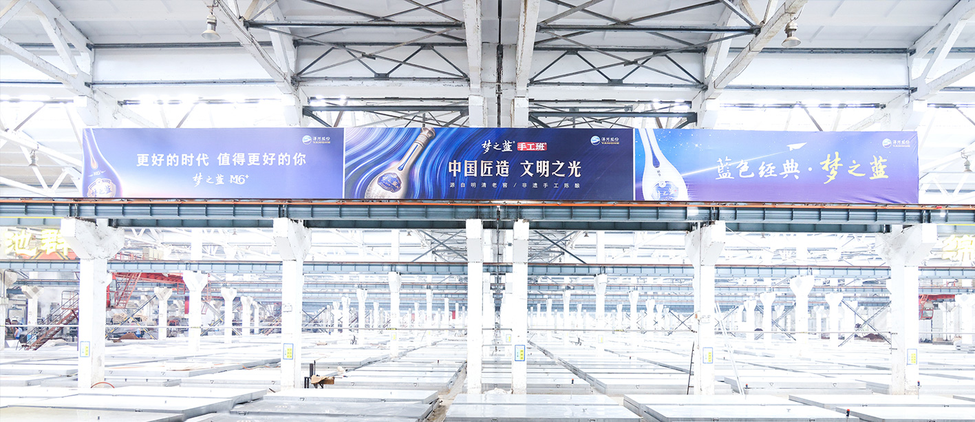 梦之蓝中央酒区位处洋河核心酿酒区域,占地约20000平方米,由传统酿造技艺展示馆、梦之蓝手工生产区、古法酿酒遗址区、古窖池群等历史景观组成。