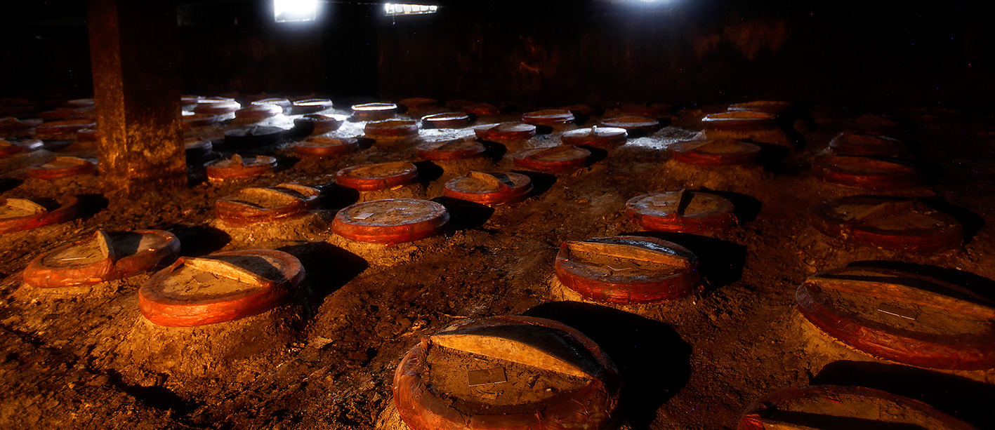地下酒窖总占地面积3322平方米,总建筑面积5658平方米,窖内共有陶坛3800余只,储酒陶坛坛龄在百年以上,被誉为“中国白酒的地下宫殿”。储存的原酒在独特的培土窖藏环境中,历经岁月沉淀,酒体自然老熟,成为滴滴珍贵的稀世陈酿,被称为“液体黄金”。