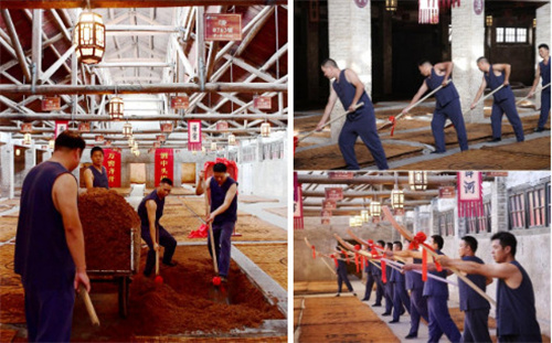 茶有茶艺,酒有酒道,延续酒脉,师徒同心。“粮必重其质,曲必重其时,水必重其甘,窖必重其养,器必重其净,量必重其准,火必重其缓,工必重其细,储必重其长!”师父和徒弟全体起立,在古朴的拜师礼中郑重宣誓“洋河酒训”,师徒连心、齐头并进,通过师徒的手手相传、口口相授、心心相印,将洋河酿酒技艺融于血脉。徒弟们历经数十年如一日的“修炼”,再实现到师父的角色转换,诠释师道传承的价值与意义,推动酿酒技艺薪火不绝,匠人精神代代相承。