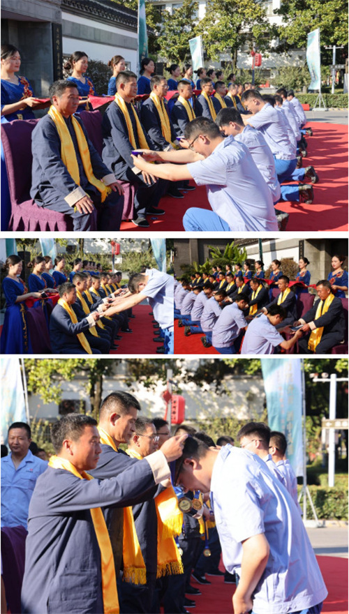 “一拜感念师恩,传承匠心;二拜技艺超群,通古博今;三拜传承酒脉,报国为民。”……洋河人重师道,尊师道,以弦歌不辍、薪火相传的精神,表达对绵柔品质的不懈追求,师徒间的情谊在拜师仪式中建立、沉淀,既有同事间的相互合作,也有前辈对后辈的帮扶。