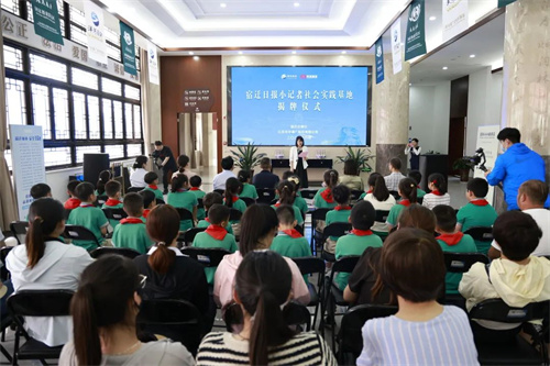 在三方的共同见证下,吴继硕、刘学为宿迁日报小记者社会实践基地揭牌。