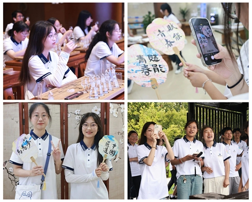 报到后,学子们来到国家4A级景区——洋河酒厂文化旅游区,感受“大花园”一样的大工厂。讲解员多角度、多维度讲述了洋河酒文化的历史渊源,展示了中国名酒的文化魅力。神秘的地下酒窖、壮观的陶坛库和白酒银行、现代化包装和立体仓库、气势恢弘的天下第一坛……都给学子们留下了深刻印象。考入扬州大学的李佳怡表示:“太震撼了,没想到洋河的规模那么大!”参观过程中,在专业品酒师的指导下,学子们体验了“自调酒”的快乐,调制属于自己的绵柔味道,并以漆为笔,以水为墨,制作了特色漆扇,感受传统非遗魅力。